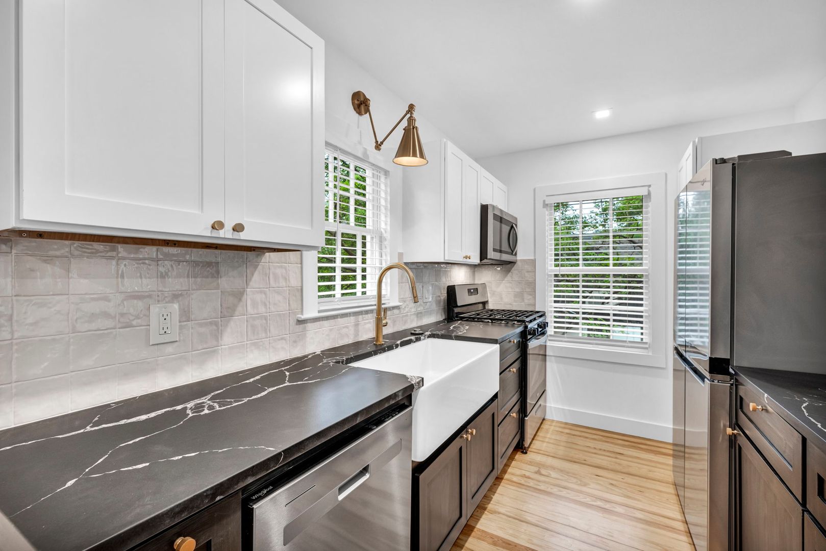Beautiful garage apartment with 200 sqft loft. Includes dedicated garage parking and private courtyard.