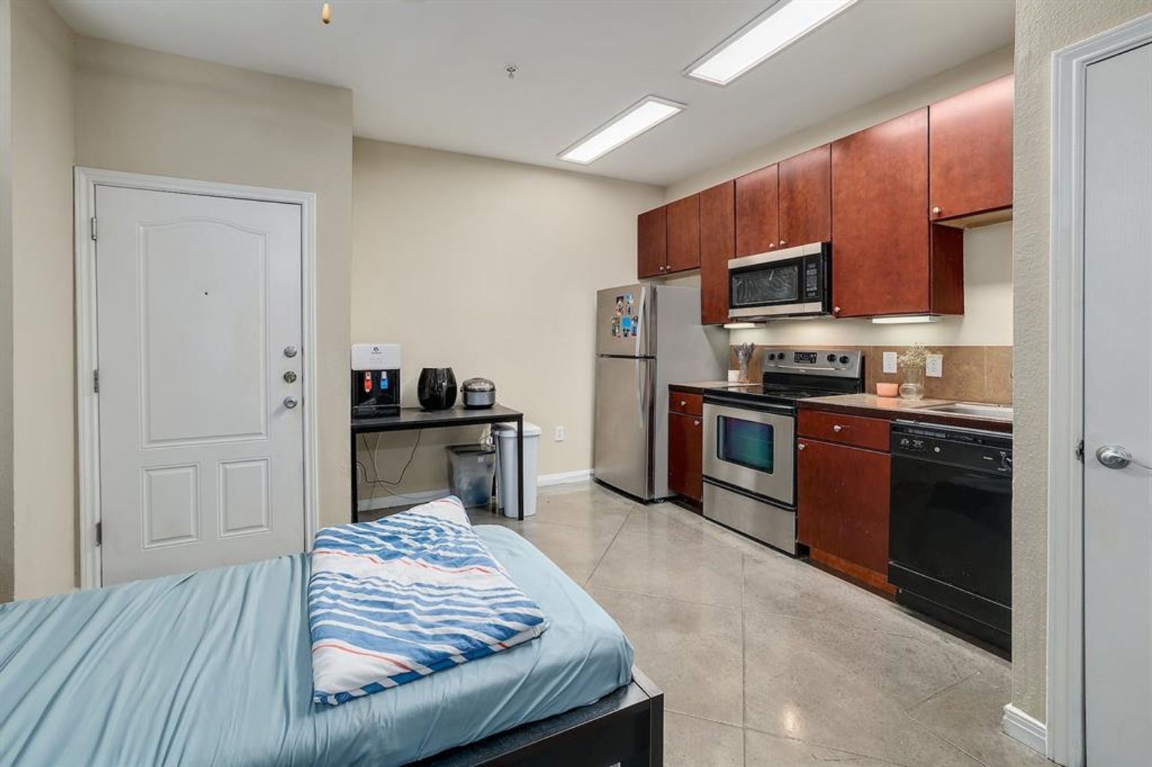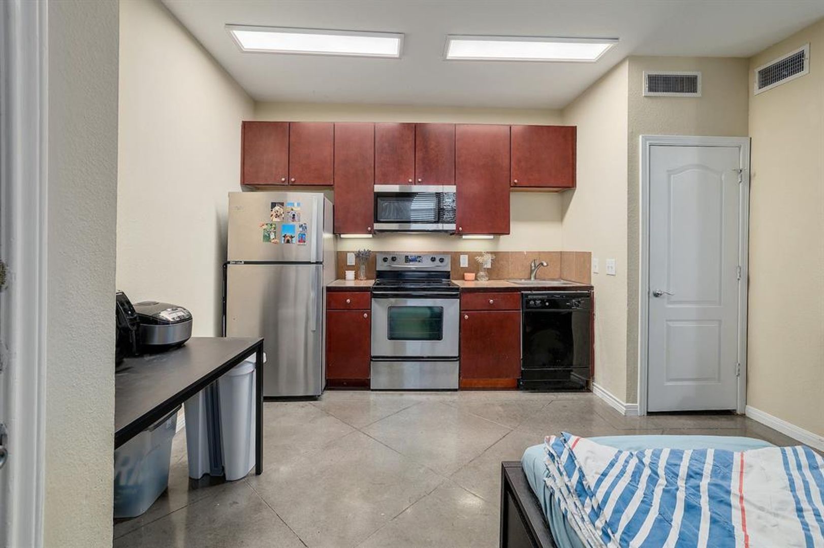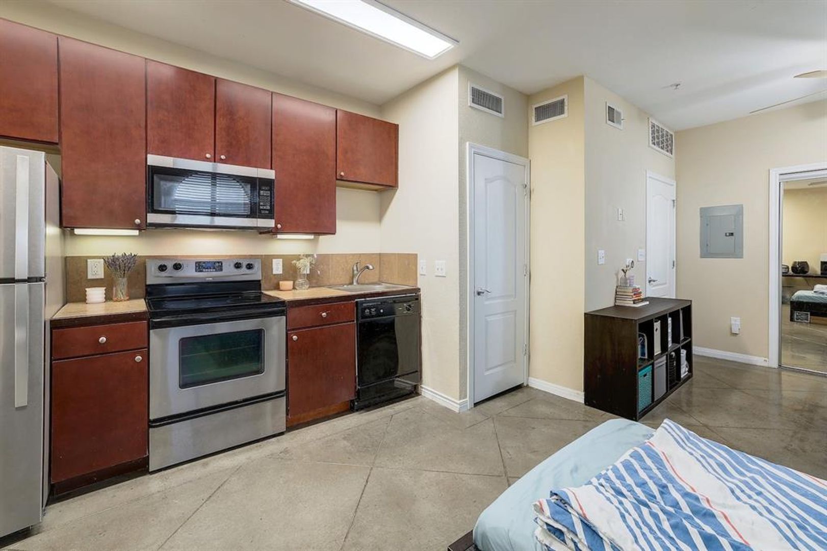 West Campus Studio - August Pre-Lease! Modern studio, in a secured complex, with a rooftop pool, and garage parking included. You cannot beat this deal for a single person unit. Walking distance to campus.