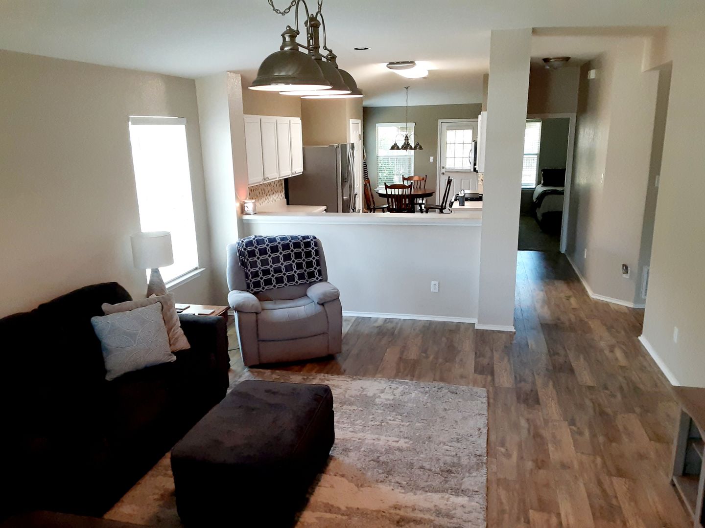 Horizon Park community park and pool. Newer built 3 bedroom 2 bath, open floorplan, new flooring throughout & recently painted. Kitchen has stainless steel appliances that are less than 2 years. Backyard is fenced and has a covered patio and sprinkler system. Home has a 2 car garage!